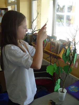 In History we researched our own family trees. Afterwards we decided to make our own using branches and paper leaves. They looked great.